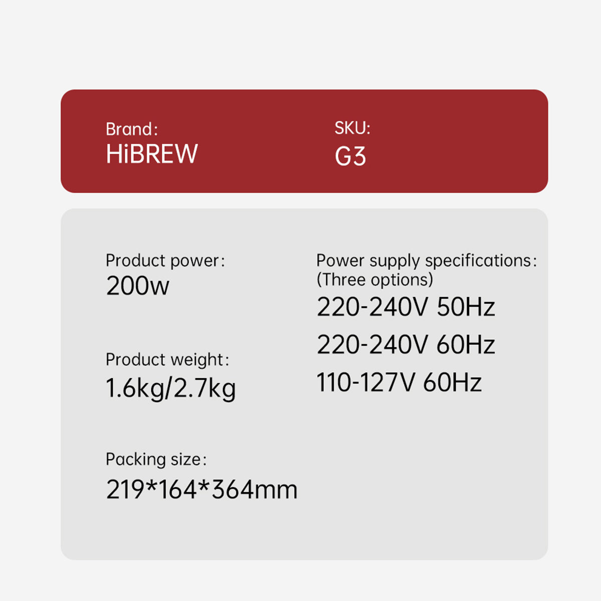 40mm conical burr, 31-gear scale, anti-static function & memory modes. HiBREW G3 grinder delivers uniform grinding and easy cleanup for barista-quality coffee.