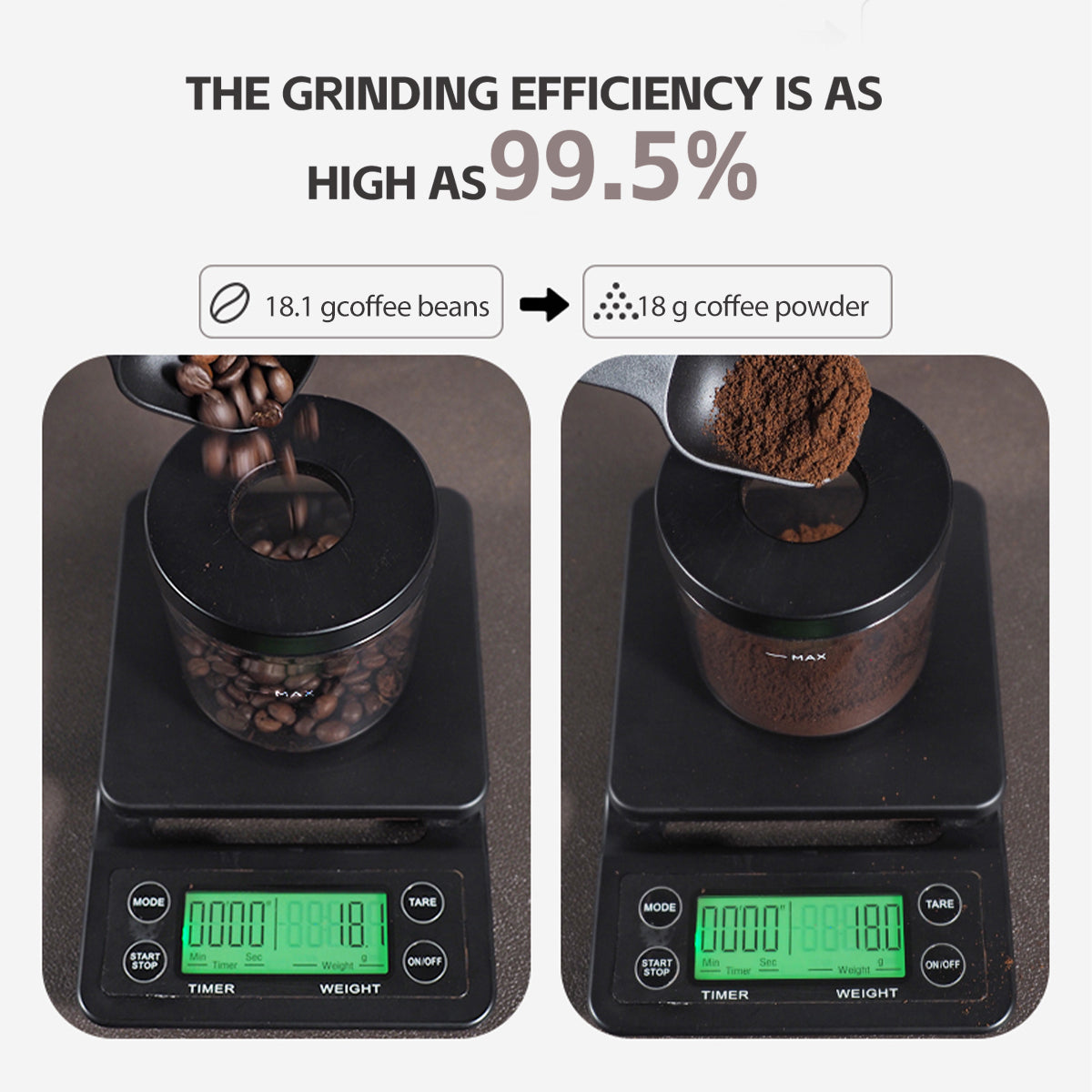 Double-layer air blower removes 99% residue. Keeps your coffee fresh and mold-free with zero leftover powder after grinding.