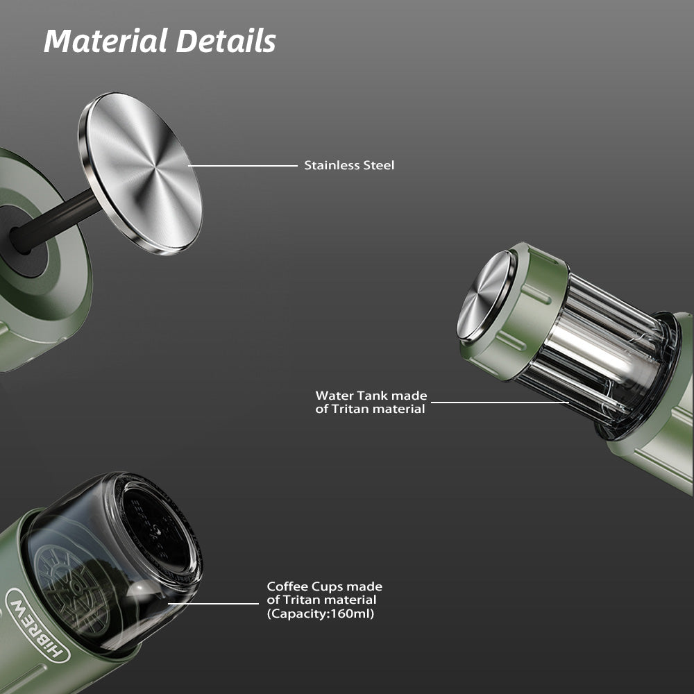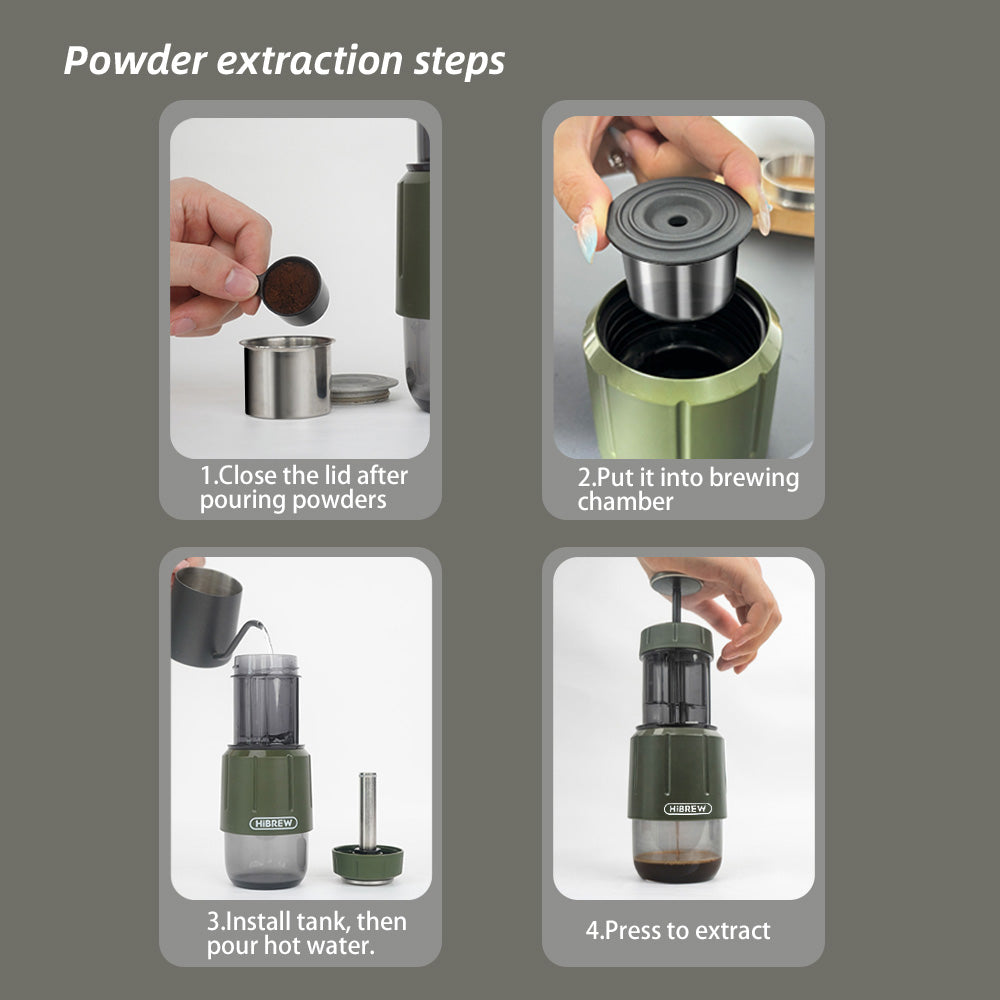 HiBREW 2 in 1 Portable Espresso Maker For Capsule & Ground Hand Press Brewer H4D