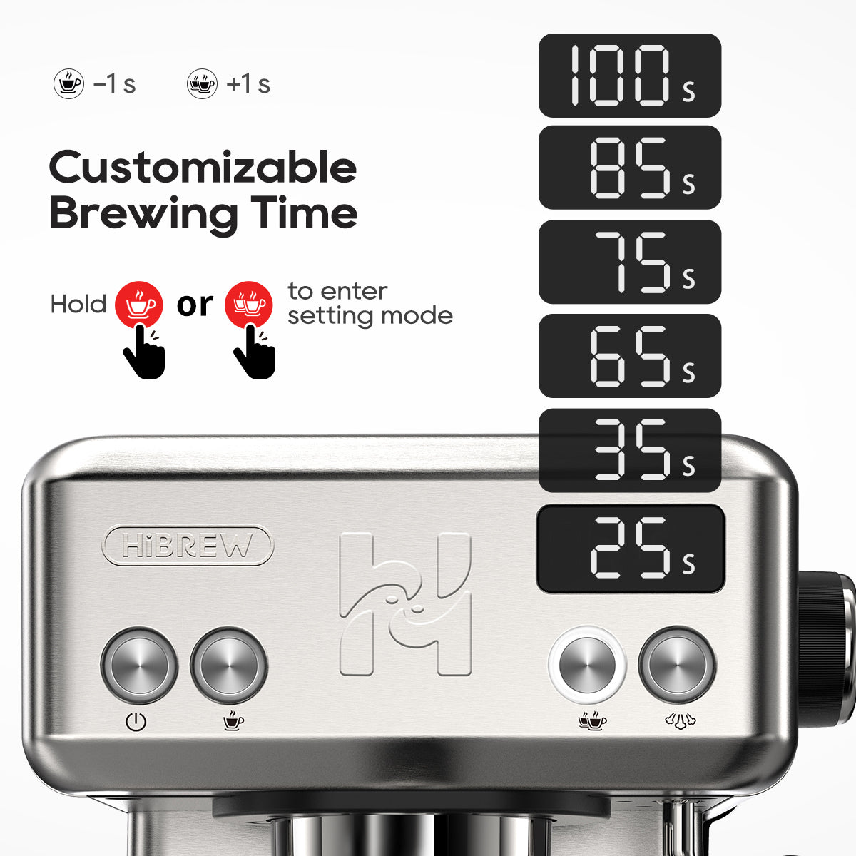 • Adjustable brew time (up to 100 seconds)