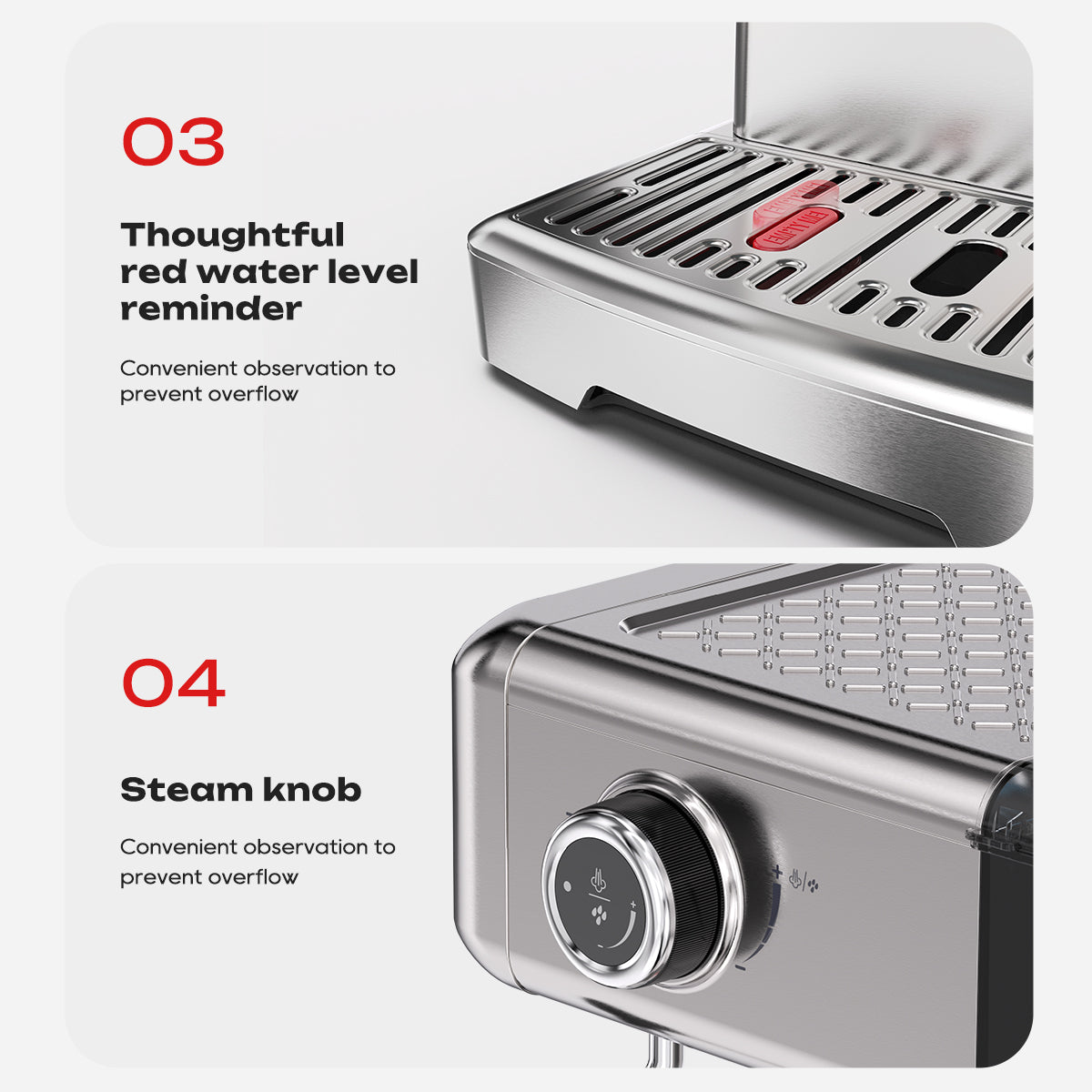 05 - Intelligent Water Shortage AlertThe machine automatically detects low water levels and alerts you with a 4-light indicator. Never run dry mid-brew again.