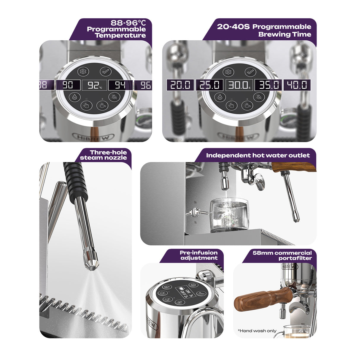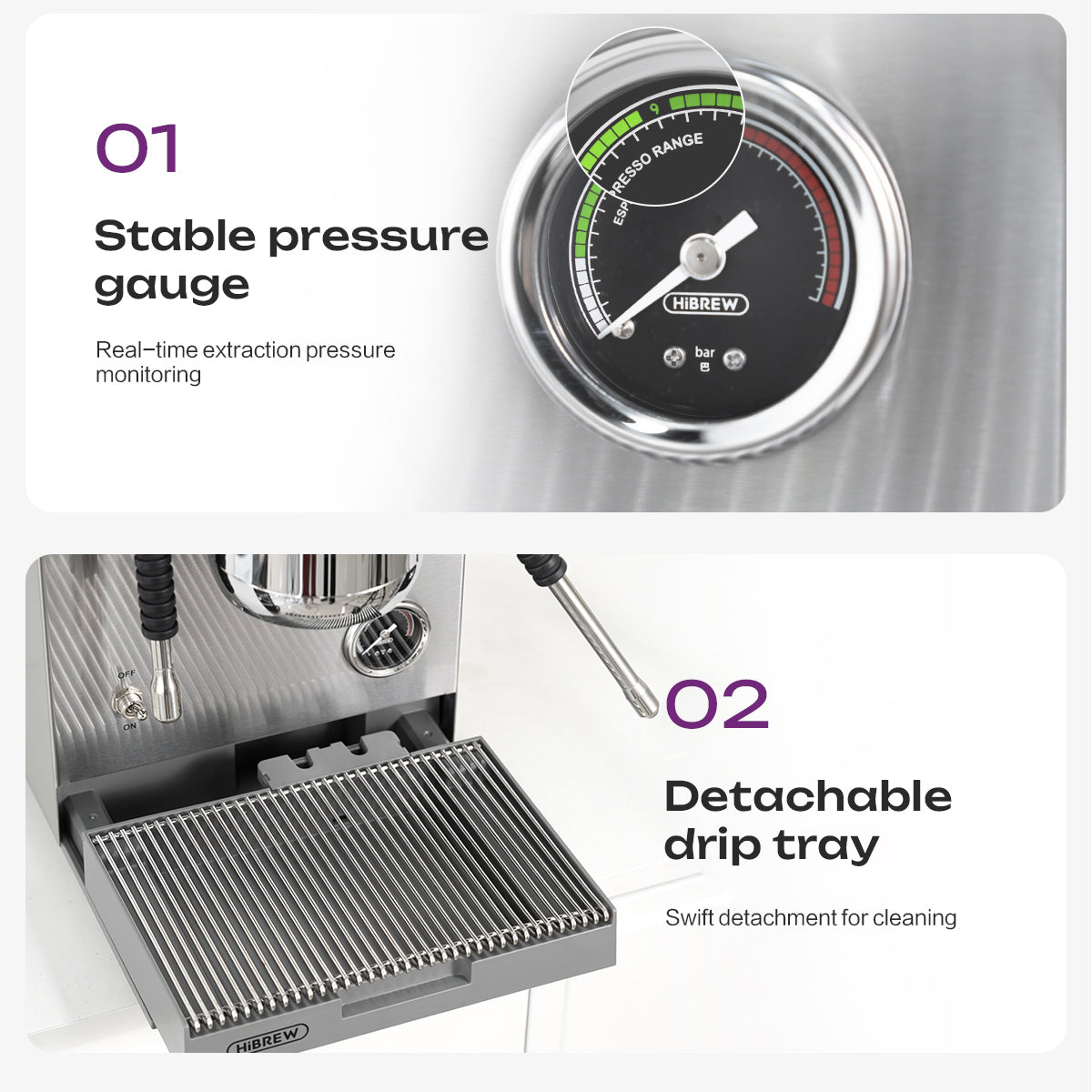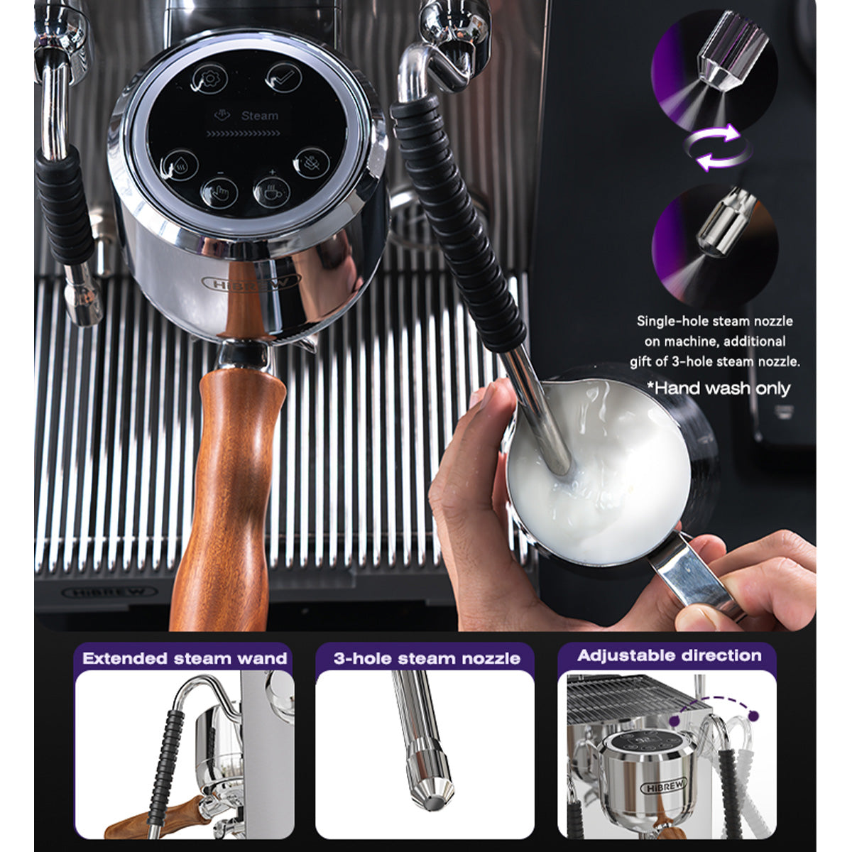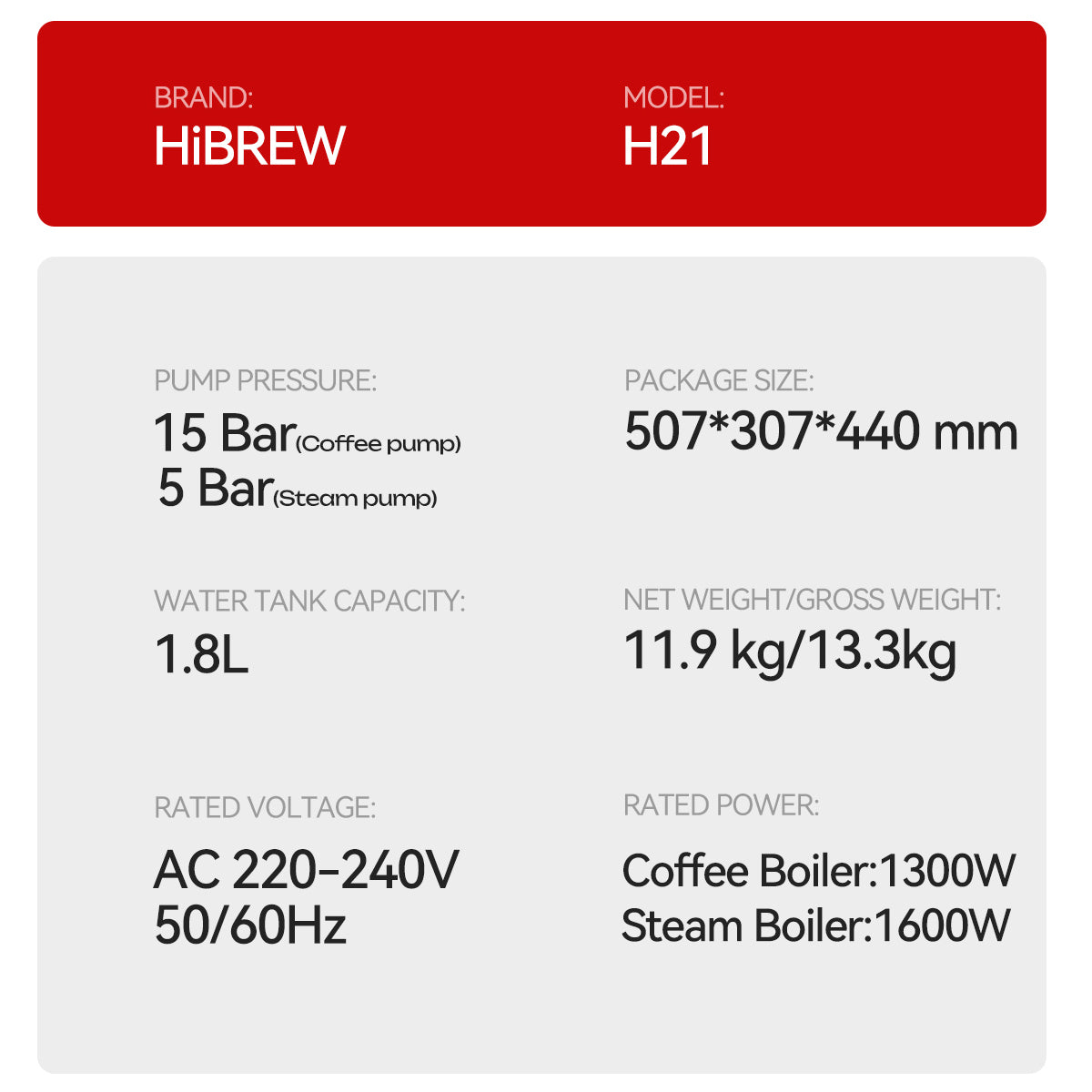 Elevate your coffee game with the HiBREW H21, a high-performance espresso machine designed for coffee enthusiasts. Featuring a dual-pump system, PID temperature control, and customizable settings, the H21 delivers café-quality espresso, steam, and hot water at your fingertips.