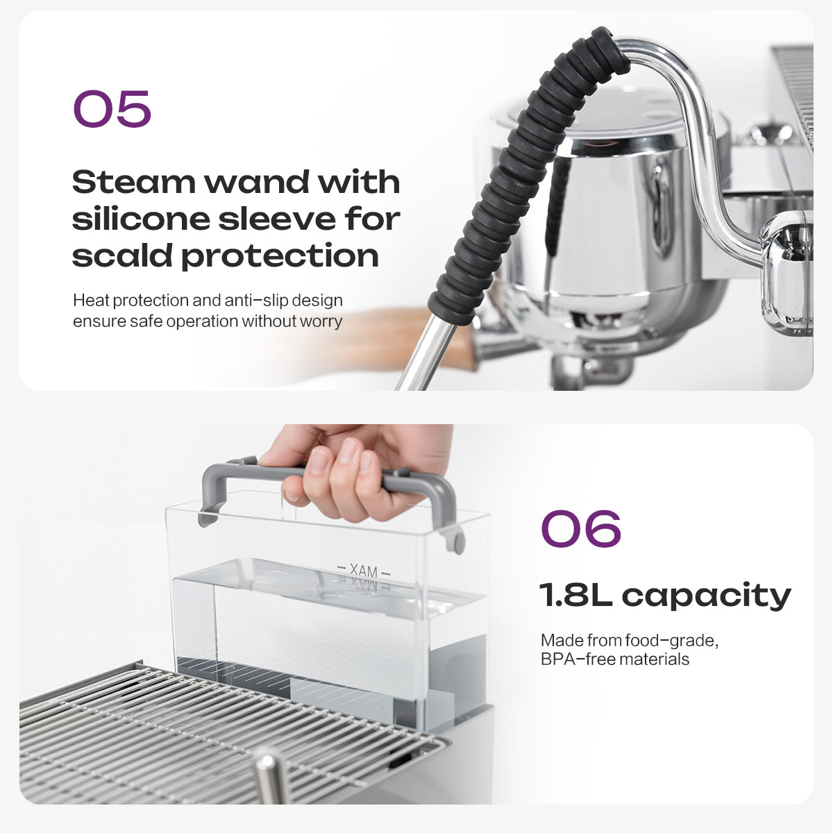 Steam Wand with Silicone Sleeve for Scald Protection : Heat production and anti-slip design ensure safe operation without worry