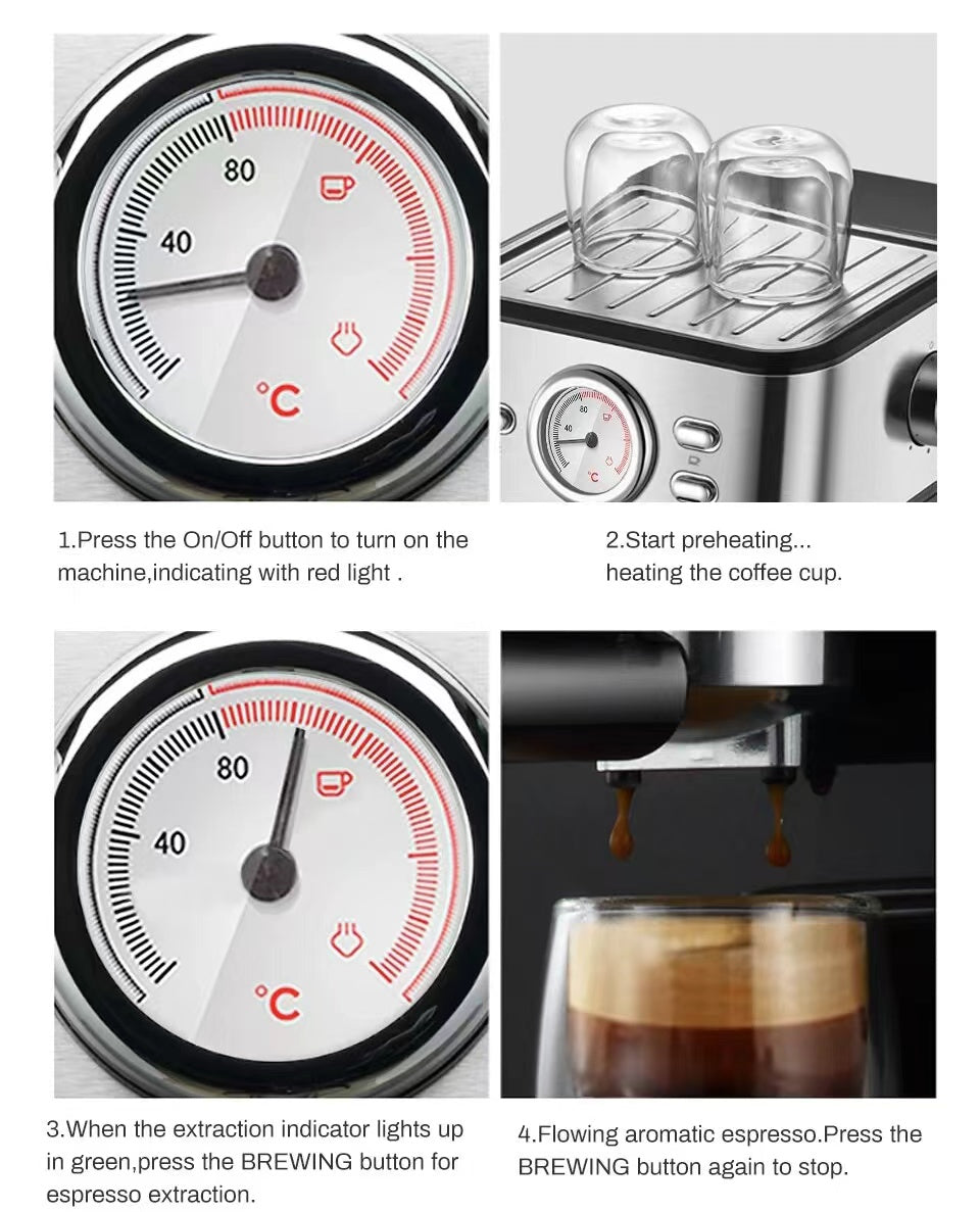 20bar high pressure extraction of more fragrant cream, pressure fully releases coffee essence