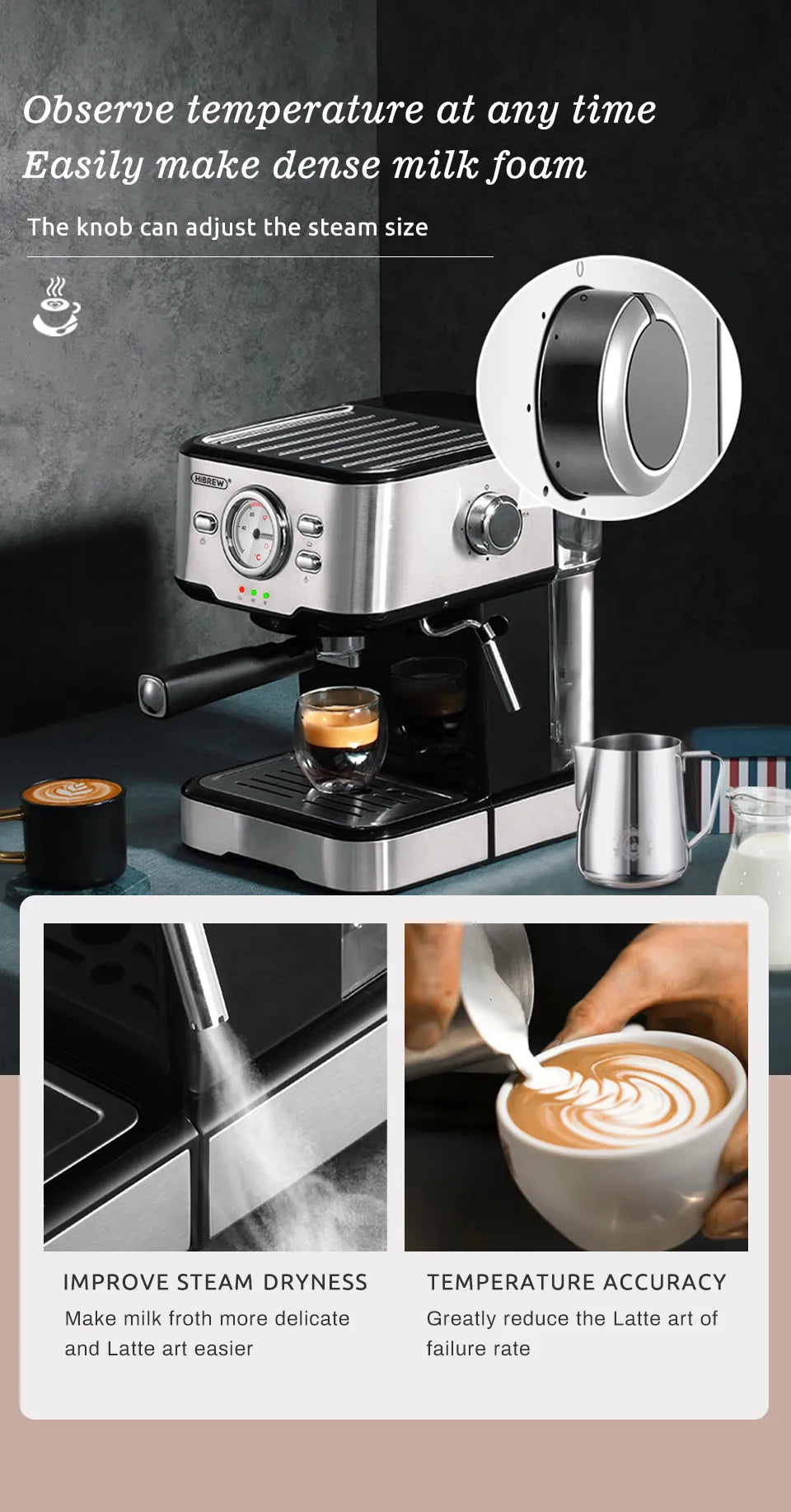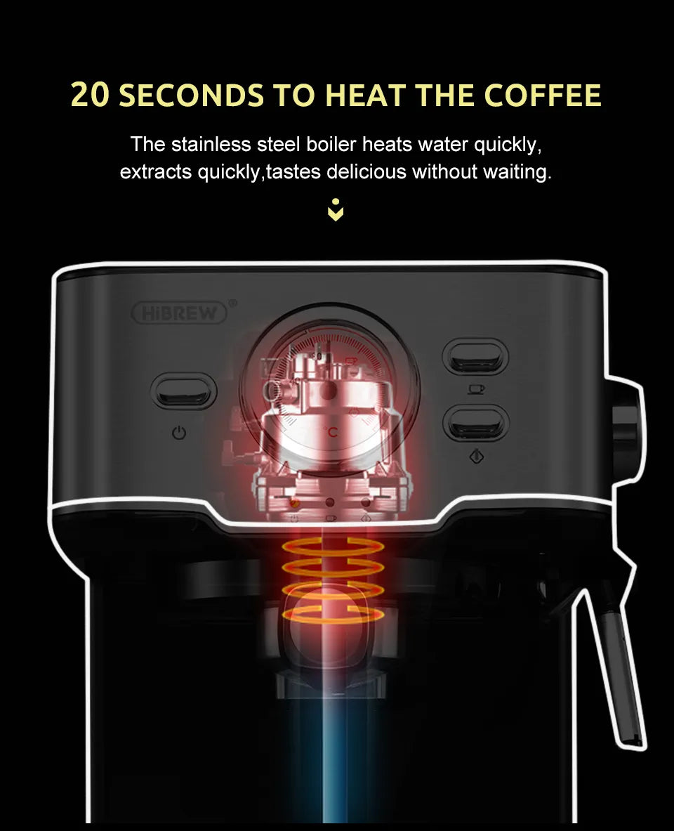 HiBREW 20 Bar Espresso inox Semi Automatic Coffee Machine Cafetera H5