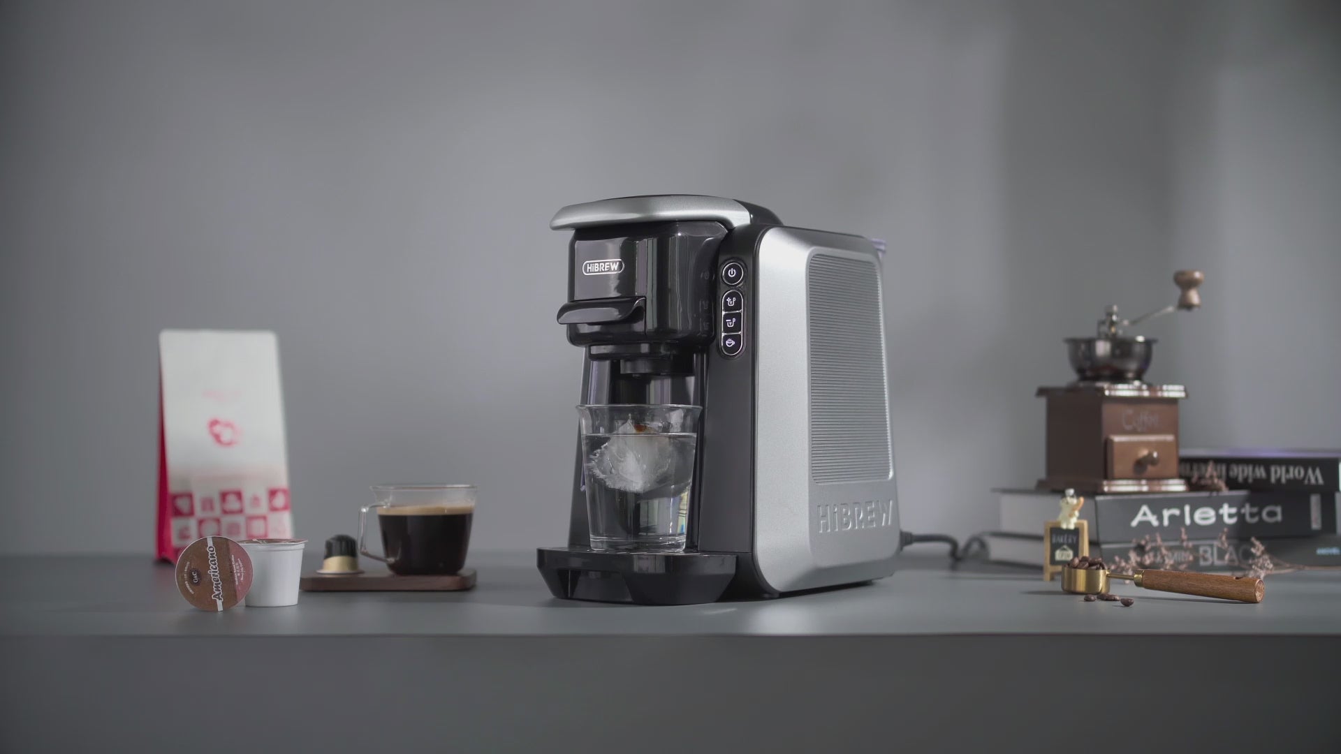 The HiBREW H6 makes coffee brewing versatile and easy. Use Nespresso, Dolce Gusto, K-Cup pods, or ground coffee—all in one machine.